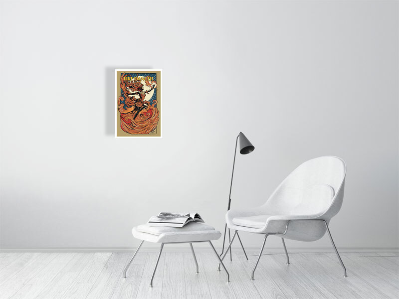 Inspired by Santa Fe’s iconic Zozobra celebration, this artwork embodies fire as a force of renewal. With graphic intensity and flowing Art Nouveau influence, the composition radiates motion and meaning—making it a powerful focal point in any space.